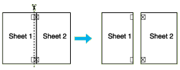 Place the edge of Sheet 1 on top of Sheet 2 and align the cross marks, then temporarily tape the two sheets together from the back: