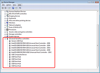 ![]() Si un USB Universal Host Controllers (Contrôleur hôte universel USB) et un USB Root Hub (Concentrateur USB racine) figurent dans la liste, Windows prend en charge la norme USB.