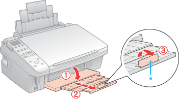 Lors de l'utilisation de papier au format Legal, abaissez la butée (*).