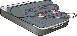 Nettoyage et remplacement du guide d'insertion du papierSi vous utilisez le chargeur automatique de documents depuis longtemps, il est possible qu'une ligne de points commence à apparaître sur les images numérisées. Si tel est le cas, procédez comme suit pour nettoyer le guide d'insertion du papier. Si le problème persiste, il est possible que vous deviez remplacer le guide d'insertion du papier par le guide de remplacement fourni avec le chargeur automatique de documents.