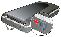 Sur la partie arrière du scanner, faites glisser le verrou de transport en position verrouillée pour bloquer le chariot du scanner.