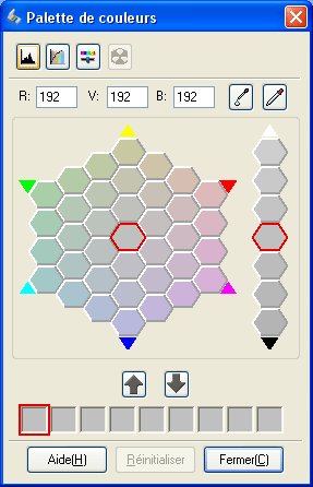 La couleur sélectionnée est placée dans la cellule centrale de la fenêtre Palette de couleurs. Des variantes de teintes sont présentées dans les cellules voisines.