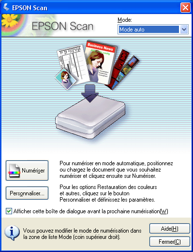 Si la zone Mode, située dans la partie supérieure droite de la fenêtre de Epson Scan, est réglée sur Mode auto, cliquez sur le bouton Personnaliser.