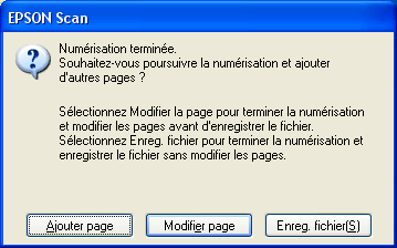 Si vous numérisez plusieurs pages, cliquez sur Ajouter page, remplacez la première page placée sur la vitre d'exposition par la deuxième page et cliquez sur Numériser. Répétez cette étape pour chaque page du document. Lorsque vous avez terminé, cliquez sur Modifier page et passez à l'étape 10.