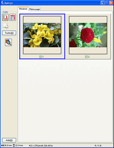 ![]() Epson Scan procède à la prénumérisation des images et les affiche dans une des fenêtres d'Aperçu suivantes.