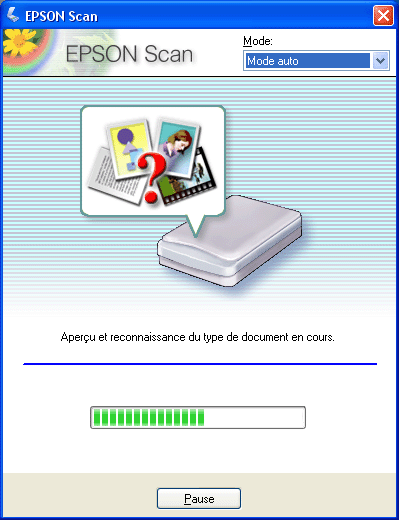 Utilisation du Mode autoLors du premier démarrage de Epson Scan, le Mode auto est activé et la fenêtre de veille de Epson Scan s'affiche.