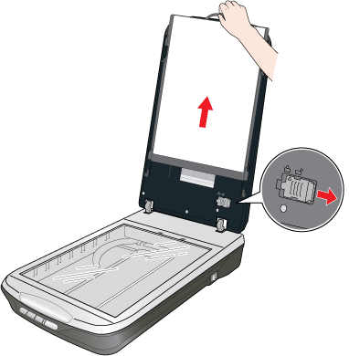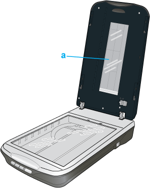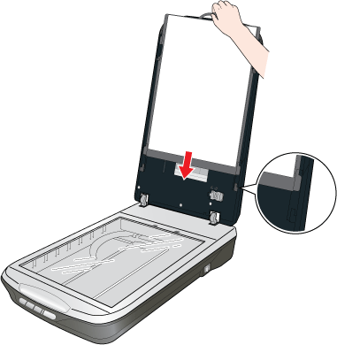 Pour numériser des bandes de film ou des diapositives, vous devez retirer le cache pour documents du capot du scanner. La fenêtre du lecteur de transparents est ainsi découverte et peut être utilisée dans le cadre de la numérisation de films ou de diapositives.