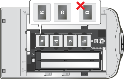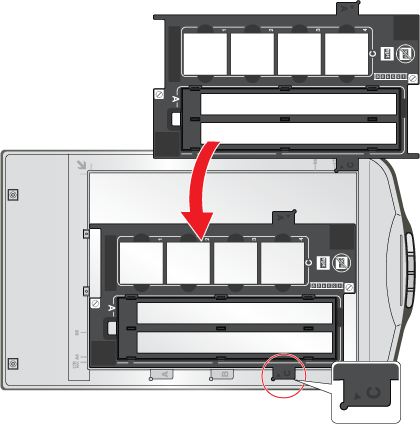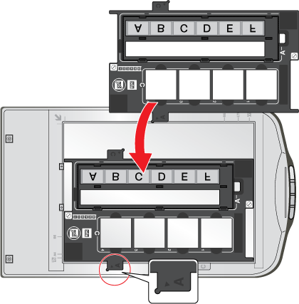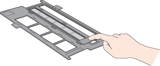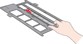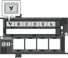 La section du support de films réservée aux diapositives vous permet de numériser un maximum de quatre diapositives de 35 mm à la fois.