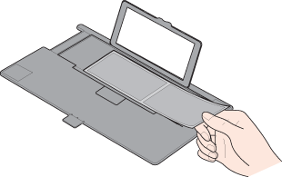 Réinstallez le cache pour documents en le faisant glisser dans les encoches du capot du scanner. Veillez à ce que la surface blanche soit orientée vers l'extérieur.