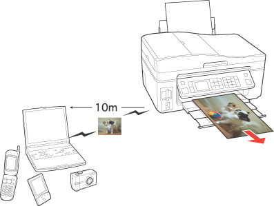 The optional Bluetooth Photo Print Adapter lets you print wirelessly from Bluetooth enabled devices, such as mobile phones, PDAs, mobile PCs and digital still cameras.
