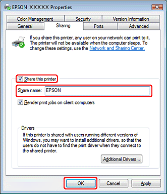 Select Share this printer, then type a Share name.