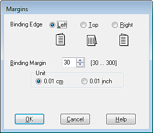 Choose cm or inch as the Unit setting. Then specify the width of the binding margin. You can enter any width from 0.3 cm to 3.0 cm, or from 0.12 inches to 1.18 inches.