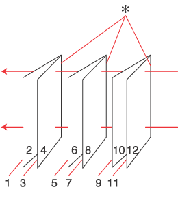 Folded booklet 2-sided printing allows you to make single-fold booklets. The pages that will appear on the outside (after the page is folded) are printed first. The pages that will appear inside the booklet can then be printed after you reload the paper into the printer as shown in the illustration below.