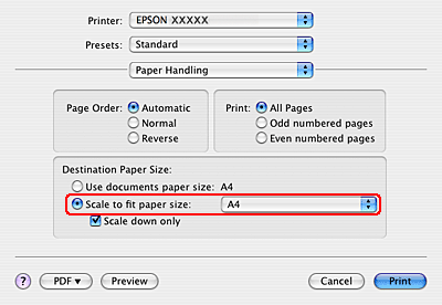 Make sure that the appropriate size is displayed in Destination Paper Size.