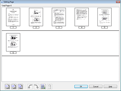 You see the Editing Page window displaying thumbnail images of each scanned page.
