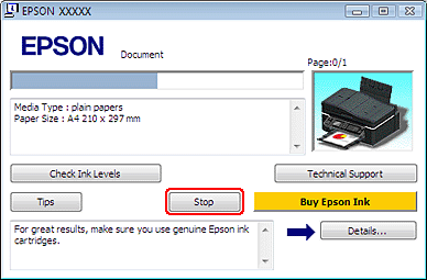 Cliquez sur le bouton Stop pour annuler l'impression.