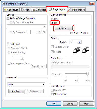 Cliquez sur l'onglet Page Layout (Disposition), puis sélectionnez On (Oui) sous 2-sided printing (Impression recto verso).