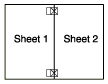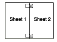Placez la feuille 1 sur la feuille 2, superposez les marques d'alignement des deux feuilles, puis réunissez-les provisoirement en plaçant du ruban adhésif au verso :