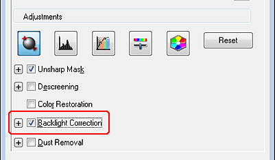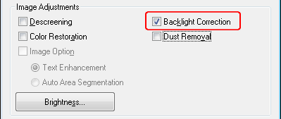 La fonction Backlight Correction (Correction du rétroéclairage) de Epson Scan vous permet de supprimer les ombres présentes sur les photos disposant d'un rétroéclairage trop important. Vous pouvez corriger automatiquement des photos imprimées lors de la numérisation.