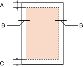 Les sections mises en surbrillance représentent la zone imprimable.