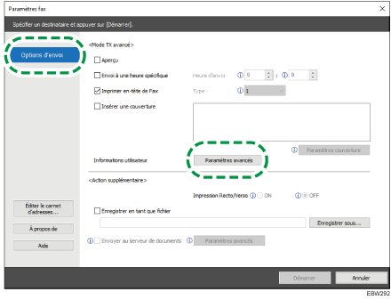 Déterminer un code utilisateur dans le pilote LAN-Fax