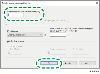 Saisissez le code d'utilisateur et cliquez sur [OK].