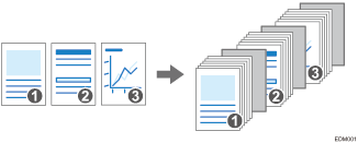 Vous pouvez insérer une feuille de papier après une page lorsque vous copiez un original comprenant plusieurs pages (intercalaire).