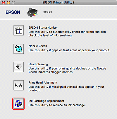 Si vous devez remplacer une cartouche d'encre avant qu'elle ne soit vide ou quasiment vide, ouvrez la zone de dialogue EPSON Printer Utility3.