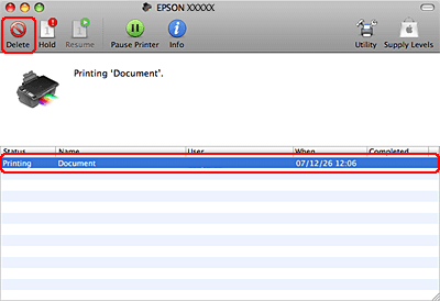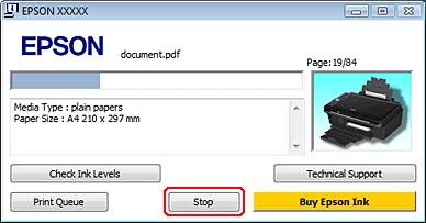 Clear pour annuler le travail d'impression en cours.