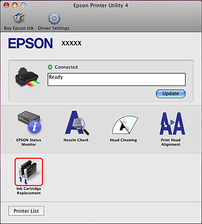Si vous devez remplacer une cartouche d'encre avant qu'elle ne soit vide ou quasiment vide, ouvrez la zone de dialogue Epson Printer Utility 4.