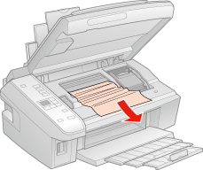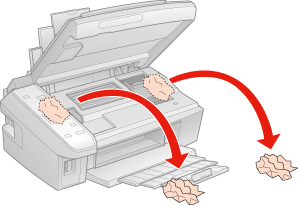![]() S'il reste du papier coincé à proximité du chargeur arrière ou du bac de sortie, retirez délicatement le papier.