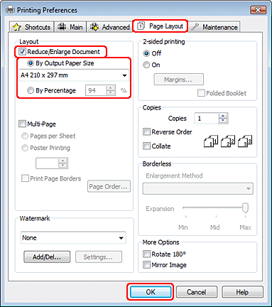 Cliquez sur l'onglet Page Layout (Disposition), puis activez la case à cocher Reduce/Enlarge Document (Réduire/Agrandir le document).