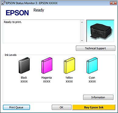 Vous pouvez accéder au Guide d'utilisation en ligne à partir de EPSON Status Monitor 3. Si vous rencontrez un problème, cliquez sur Technical Support (Support technique) dans la fenêtre EPSON Status Monitor 3.