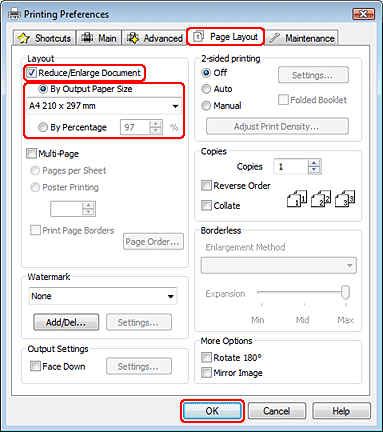 Veillez à ce que le format adéquat s'affiche dans Destination Paper Size (Format papier cible).