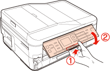 Tirez le levier de relâchement à l'arrière du panneau de commande, puis abaissez le panneau de commande pour le ranger.