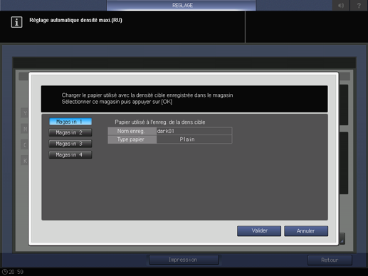 Le profil papier du magasin est remplacé automatiquement par celui utilisé pour l'enregistrement d'une densité souhaitée.