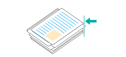 Vérifiez l'écart d'alignement ('a' ci-dessous) de la pile de papier. Si la largeur définie est supérieure à la largeur réelle du papier, il y a désalignement.