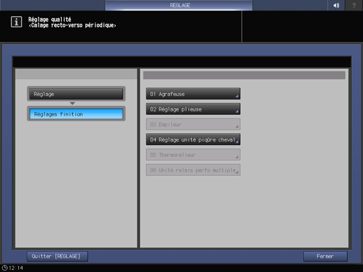 Appuyez sur Réglages finition sur l'écran Menu Réglage.