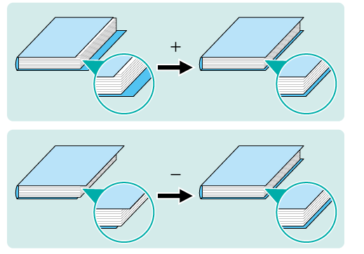 Explication supplémentaireUtilisez les touches +/- pour spécifier une valeur positive ou négative. Définissez une valeur positive pour éloigner le bord de la couverture des pages de corps. Définissez une valeur négative pour rapprocher le bord de la couverture des pages de corps.
