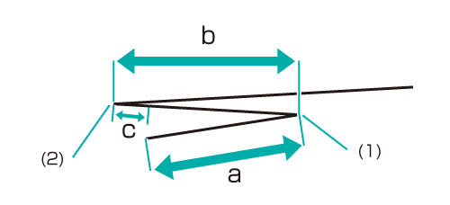 Mesurez les distances 'a' et 'b' de la figure ci-dessous et vérifiez la différence 'c' entre 'a' et 'b.'