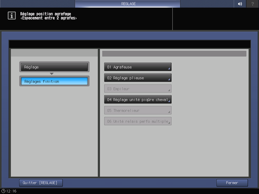 Appuyez sur Réglages finition sur l'écran Menu Réglage.