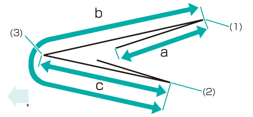 Lorsque vous réglez le Premier pli, le Deuxième pli et le Troisième pli, commencez toujours par le réglage du Premier pli. La position du Premier pli est calculée à partir du bord du papier, tandis que celle du Deuxième pli est calculée à partir de la position du Premier pli et celle du Troisième pli à partir de la position du Deuxième pli. Par conséquent, les mesures "a", "b" et "c" de l'étape 1 sont susceptibles de changer pour chaque position de pliage.