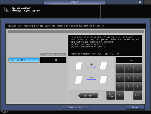 Utilisez le clavier de l'écran tactile pour entrer la valeur de réglage.