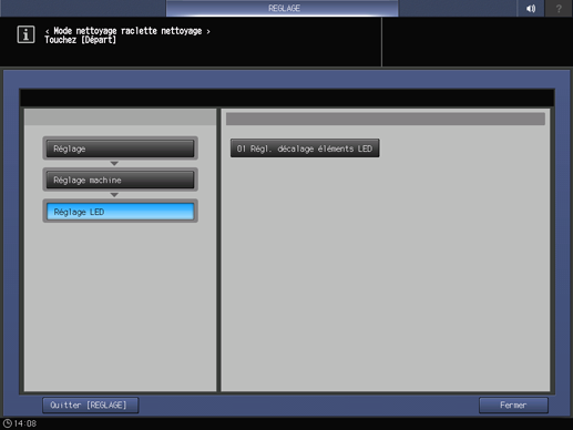Appuyez successivement sur Réglage machine, Réglage LED et Régl. décalage éléments LED.