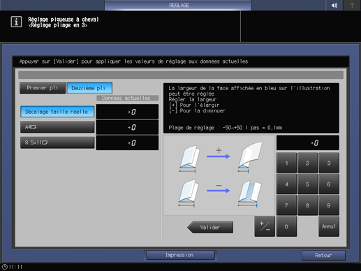 Sélectionnez Pliage 2 et utilisez le clavier de l'écran tactile pour entrer la valeur de réglage.