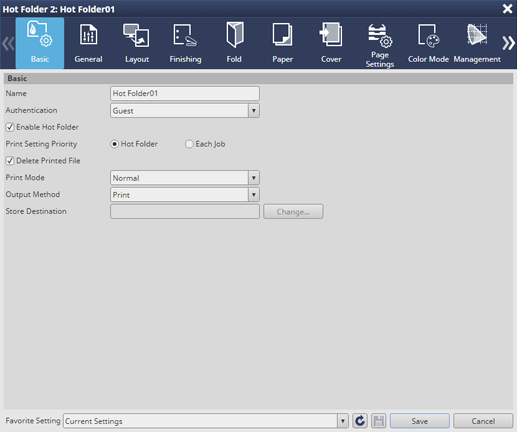 Cliquez sur Modifier dans l'écran Configuration Hot Folder pour afficher l'écran Hot Folder.