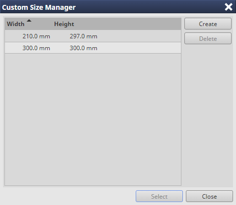 Enregistrer ou supprimer un papier de format personnalisé.