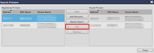 L'imprimante cible est ajoutée à la liste Imprimantes enregistrées.