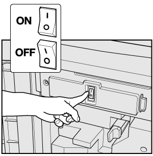 Avant de remettre l'interrupteur principal sur marche immédiatement après la mise hors tension, vérifiez que le voyant d'alimentation situé sur le panneau de contrôle est éteint. Attendez au moins 10 secondes avant de remettre l'interrupteur principal sur marche. Si l'interrupteur principal est remis sur la position ON (Marche) dans les 10 secondes ou moins, la machine pourrait ne pas fonctionner correctement.