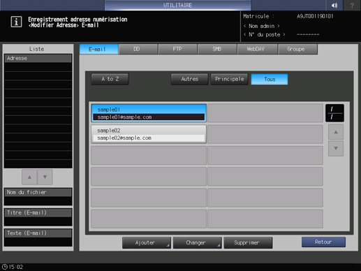 Appuyez sur l'élément d'une touche affichée sur l'écran tactile pour sélectionner la fonction.